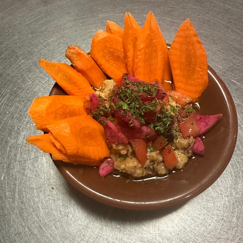 Baba ganoush, fried cauliflower, banana peppers, tomatoes, tahini and hot sauce |