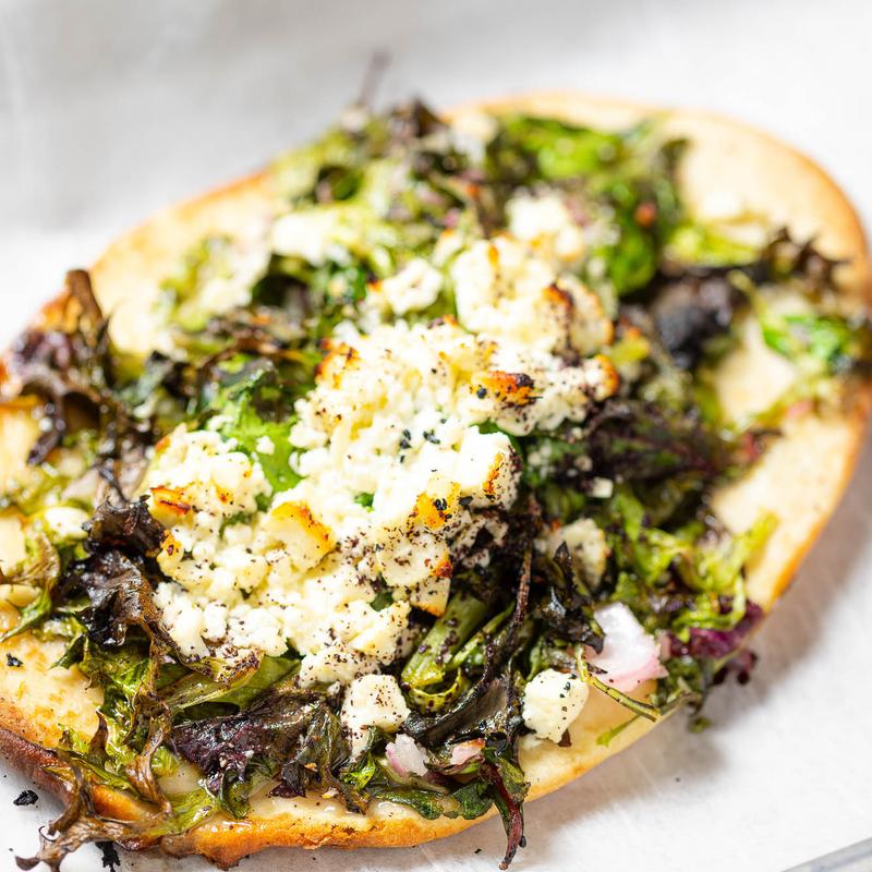 Flat bread, olive oil, feta, onions, and lemon juice.