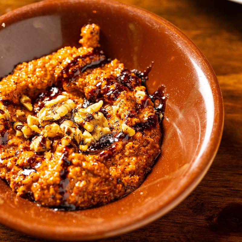 Walnuts, red peppers, and pomegranate molasses.